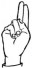 На ћирилици написано БОГИЋ КРНЧЕВИЋ састоји се из 13 слова [?]. Исписано ћириличном једноручном азбуком за глувонеме:
